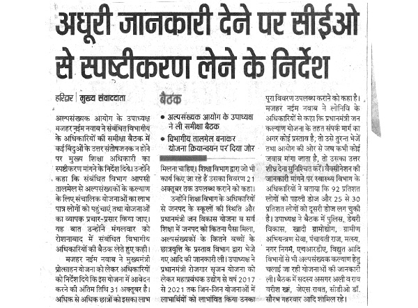 मा0 उपाध्यक्ष द्वारा जनपद हरिद्वार में समीक्षा बैठक दिनांक 12.10.2021